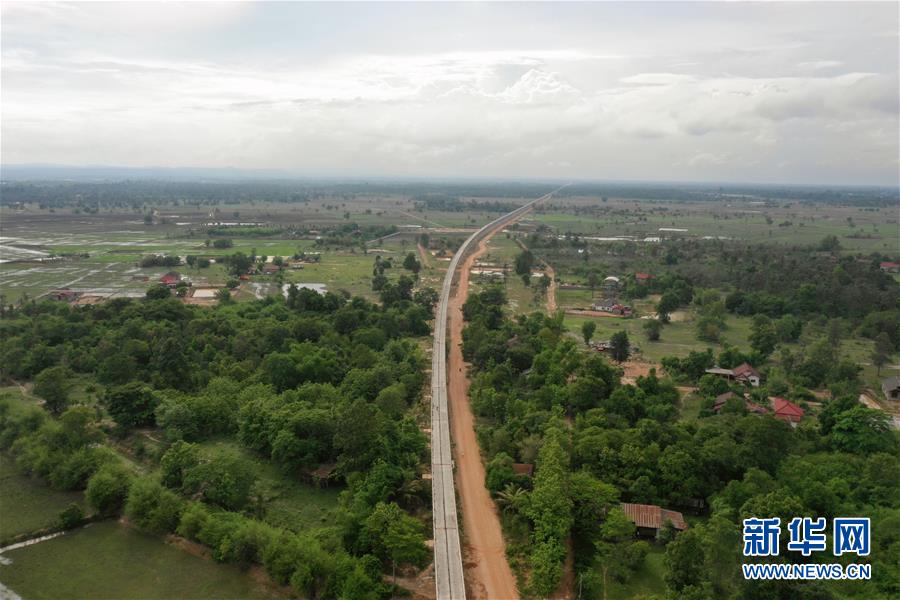 图为6月1日拍摄的楠科内河特大桥。 随着一片32米曲线T梁在老挝首都万象楠科内河特大桥两座桥墩上成功落定,中国中铁二局承建的中老铁路全线最长桥梁架梁施工1日圆满完成。 新华社发 臧衡 摄 图片来源:新华网