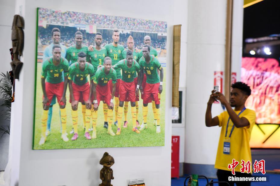 6月27日,喀麦隆男子国家足球队照片亮相展厅。当日,第一届中国-非洲经贸博览会在湖南省长沙市举行。 中新社记者 杨华峰 摄