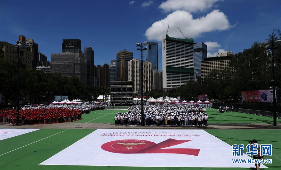 7月1日,在香港维多利亚公园,市民在列队排出“我爱香港”英文字样。 当日,香港艳阳高照。约5000名香港市民会聚香港维多利亚公园,列队排出“我爱香港”的英文字样,为香港特区22岁生日送上一份爱的祝福。 新华社记者 王申 摄