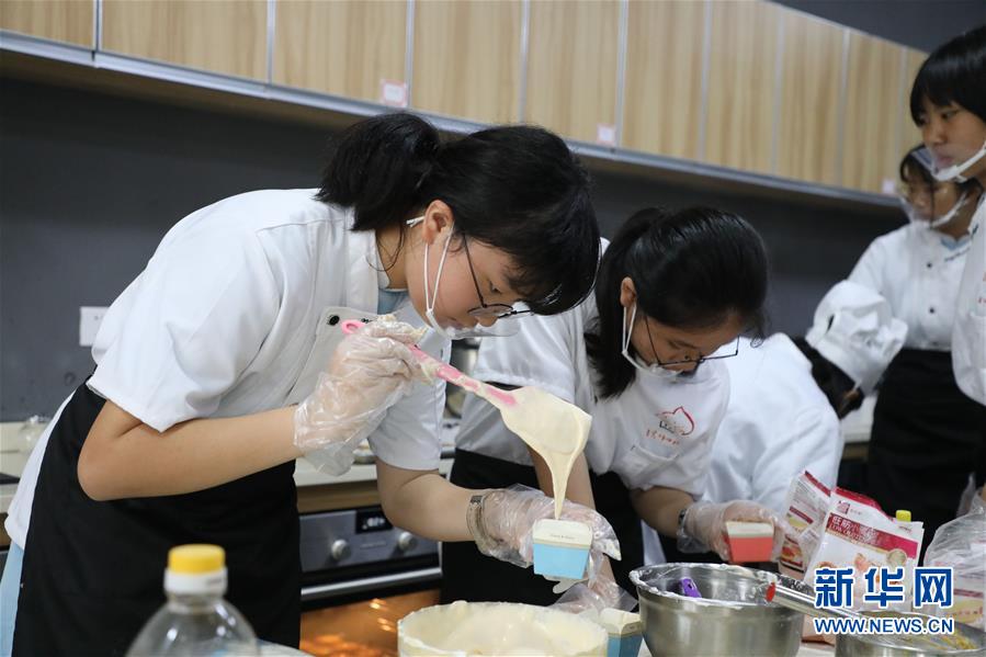 广州市番禺区实验中学的学生在上蛋糕烘焙课(6月3日摄)。 小学生会做一日三餐,初中生能煲汤,高中生懂理财……无论是上学的动手实践课程,还是即将到来的暑期家务作业,广州不同于常规课程的劳动教育引发各界讨论。 新华社记者 李嘉乐 摄