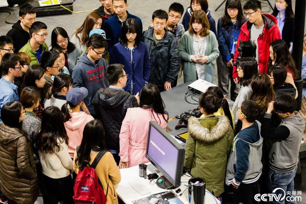 摄影探究课上,刘祺和学生们在一起。