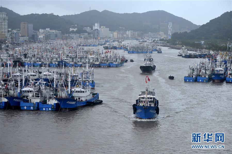 8月8日傍晚,在舟山市沈家门渔港,渔船纷纷回港躲避台风。 中央气象台8月8日通报,今年第9号台风“利奇马”预计将于10日白天登陆浙江中北部沿海,也有可能沿浙江近岸海面北上。“利奇马”将是今年以来登陆或影响我国最强的台风。中央气象台发布了台风橙色预警。 新华社发(胡社友 摄)
