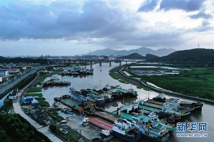 8月8日傍晚,船只停泊在舟山市定海区岑港水道内躲避台风。 中央气象台8月8日通报,今年第9号台风“利奇马”预计将于10日白天登陆浙江中北部沿海,也有可能沿浙江近岸海面北上。“利奇马”将是今年以来登陆或影响我国最强的台风。中央气象台发布了台风橙色预警。 新华社发(姚峰 摄)