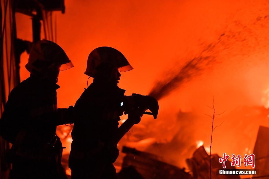 8月12日,昆明市一汽车修理厂厂房起火,昆明市消防救援支队接警后立即调派2个大队9个中队36车138人赶赴现场扑救。据了解,现场为3层简易钢结构厂房,燃烧物质主要为钢材、木板、橡胶、塑料、机油等。截至23时25分,现场明火已扑灭,暂未收到人员被困和伤亡的报告,起火原因和财产损失正在调查核实中。中新社记者 刘冉阳 摄