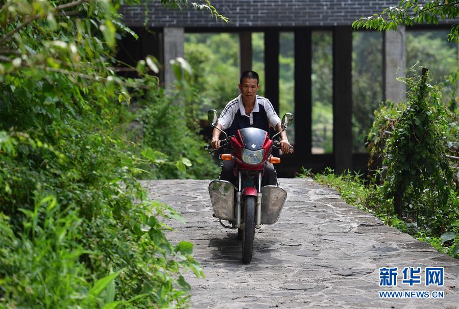 龙革雄骑车外出劳作(8月16日摄)。 新华社记者 黄孝邦 摄