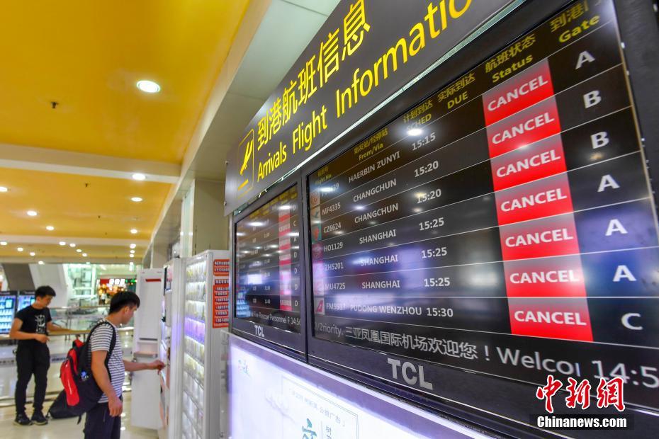 8月29日,受台风“杨柳”影响,三亚凤凰国际机场取消航班223架次(进港132架次,出港93架次),目前该机场暂无航班起降,所有飞机均已离场。图为三亚凤凰国际机场到港航班信息屏显示,所有到港航班均已取消。中新社记者 骆云飞 摄