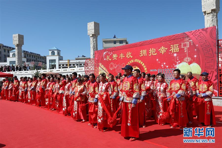 9月23日,2019年张家口市百名新人脱贫脱单大型集体婚礼在河北省张家口市沽源县举行,50对新人喜结连理。新华社记者 杨世尧 摄
