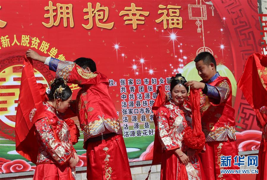 9月23日,新郎为新娘揭开盖头。新华社记者 杨世尧 摄