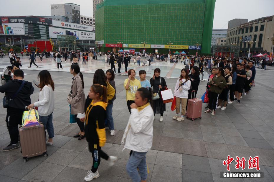 国庆假期返程高峰 乘客排百米长队进地铁站