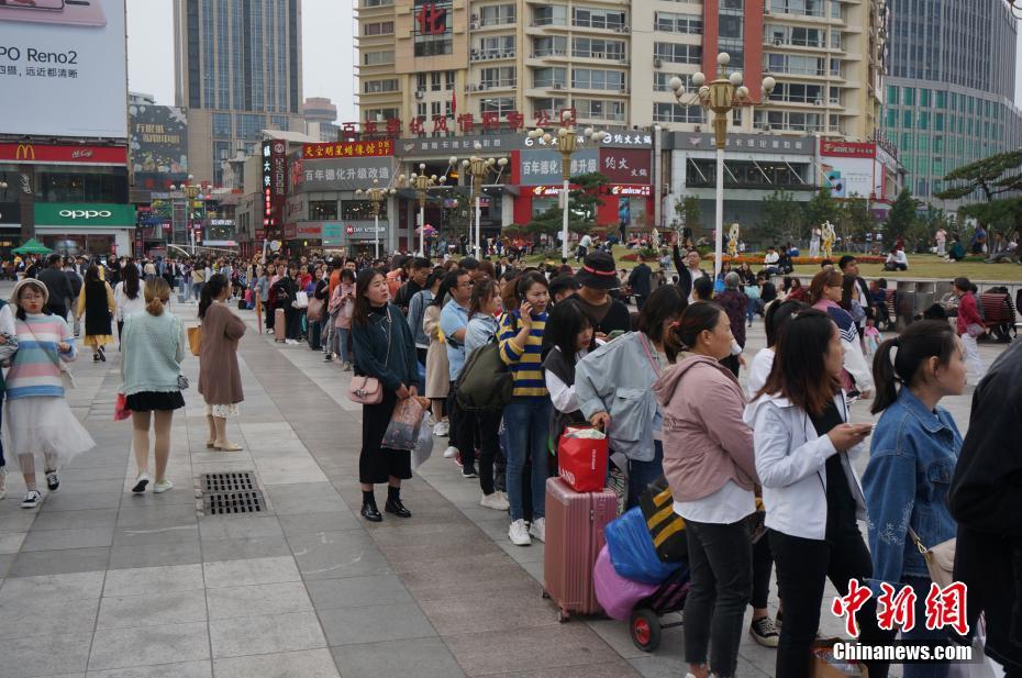 国庆假期返程高峰 乘客排百米长队进地铁站