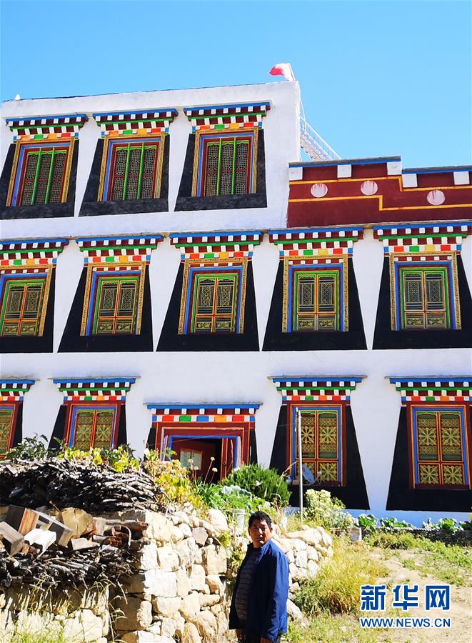10月29日,在四川省乡城县青德乡仲德村,村民阿布洛绒丹巴和他的白色藏房。 新华社记者 江宏景 摄