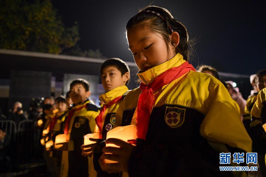 12月13日,小学生在侵华日军南京大屠杀遇难同胞纪念馆参加“烛光祭”活动。新华社记者 李博 摄