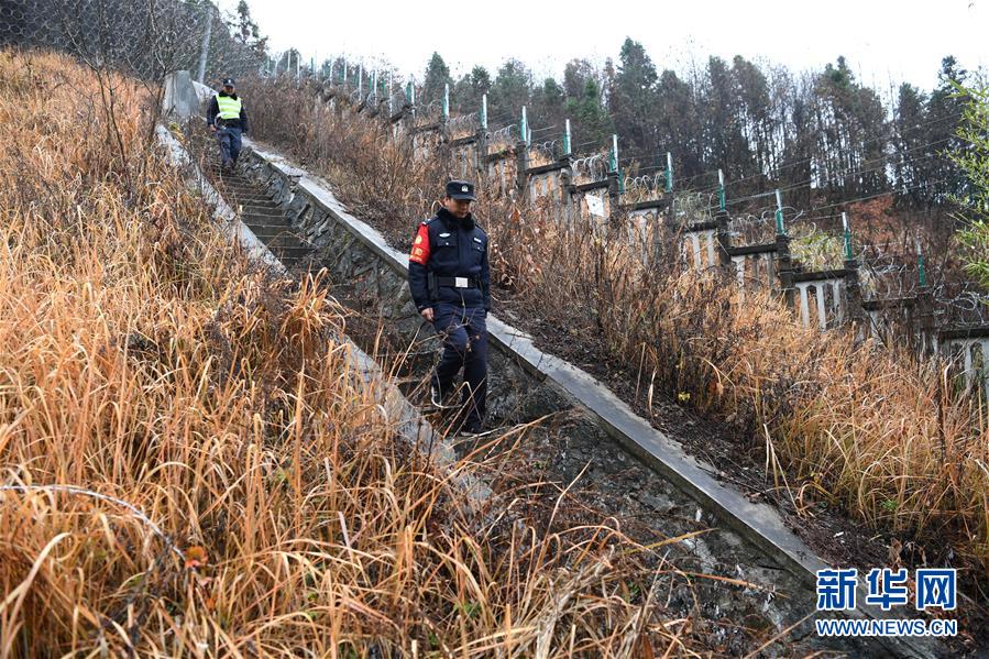 12月18日,常晓龙(前)和辅警在巡线。 新华社记者 刘军喜 摄