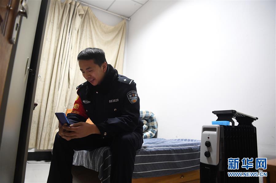 12月18日,常晓龙在驻地宿舍与妻子视频交流。 新华社记者 刘军喜 摄