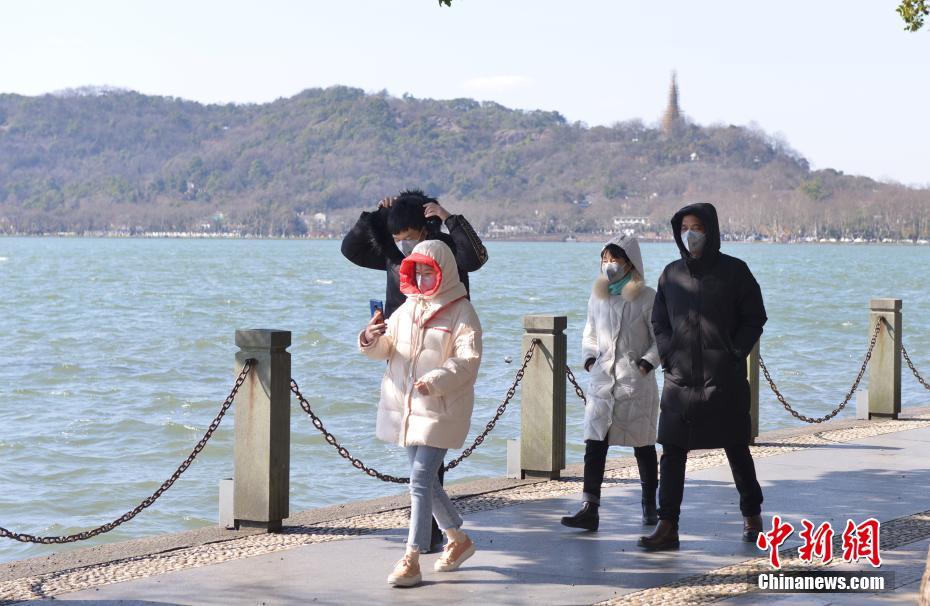 2月17日,游客戴口罩游览西湖。当日,浙江杭州天气晴好,部分市民游客来到西湖游玩。中新社记者 商泽阳 摄