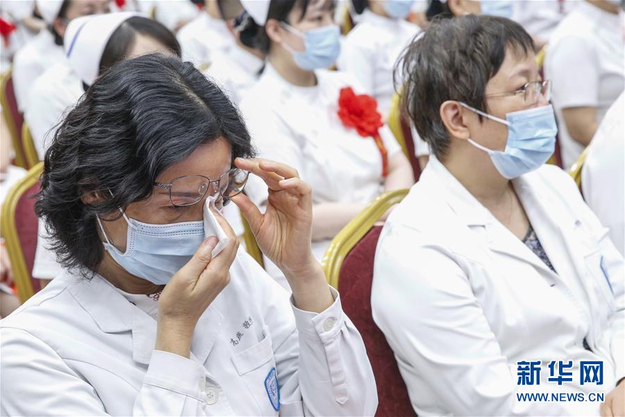 5月11日,北京大学人民医院援鄂抗疫医疗队感控专家高燕教授听战“疫”故事时感动落泪。 在国际护士节到来之际,北京大学人民医院11日举办庆祝护士节暨优秀集体和个人表彰活动,并邀请援鄂医疗队护士代表分享战“疫”故事。 我国今年护士节的主题为“致敬护士队伍,携手战胜疫情”。 新华社记者 张玉薇 摄
