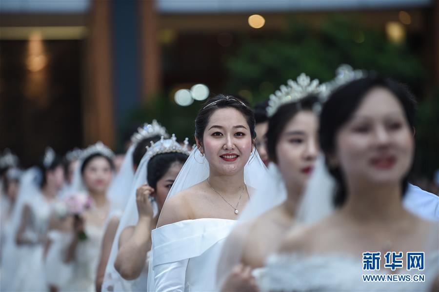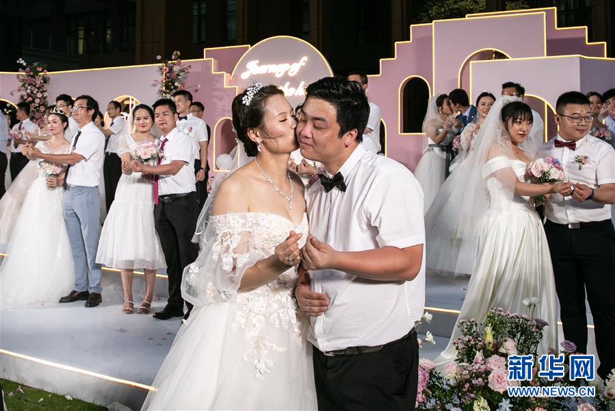 6月6日,新人在海南博鳌乐城国际医疗旅游先行区参加集体婚礼。 当日,来自北京、武汉、广州等地的30对新人在海南博鳌乐城国际医疗旅游先行区参加了一场集体婚礼。参加婚礼的部分新人此前因参加湖北的抗疫工作而推迟了婚期。 新华社记者 张丽芸 摄