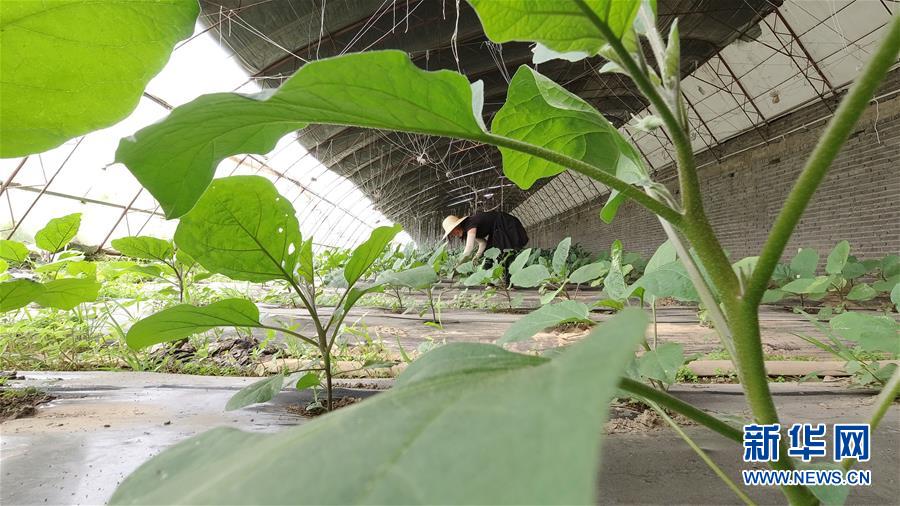 6月13日,农民在河北省唐山市丰南区小集镇钱庄村一座大棚内打理种植的茄子。新华社记者 牟宇 摄