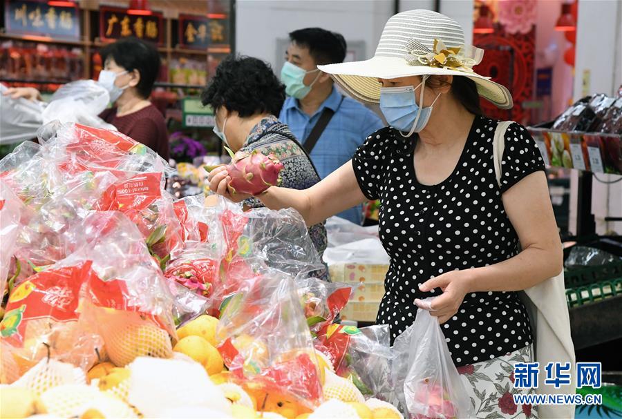 6月15日,在北京市朝阳区的京客隆甜水园店,市民在挑选水果。新华社记者 任超 摄