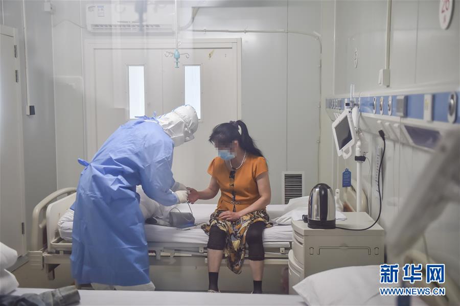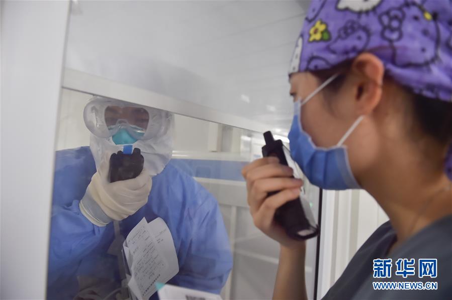 6月19日,在北京地坛医院隔离病房内,护士给新入住的病人做检查。 新华社记者 彭子洋 摄