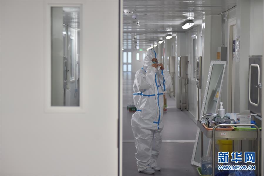 6月19日,在北京地坛医院隔离病房外,护士在穿防护服。 新华社记者 彭子洋 摄