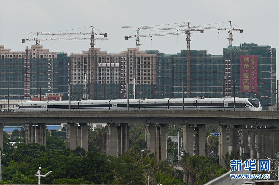 这是6月24日在海口东站拍摄的当日加开的海南环岛高铁C7483次列车。 端午假期在即,6月24日至27日,海南环岛高铁加开多对高铁列车,满足旅客假期出行需求。 新华社记者 蒲晓旭 摄