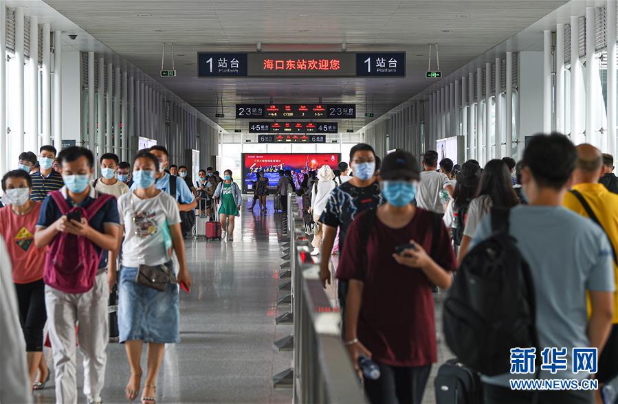 这是6月24日在海口东站拍摄的出行客流。 端午假期在即,6月24日至27日,海南环岛高铁加开多对高铁列车,满足旅客假期出行需求。 新华社记者 蒲晓旭 摄