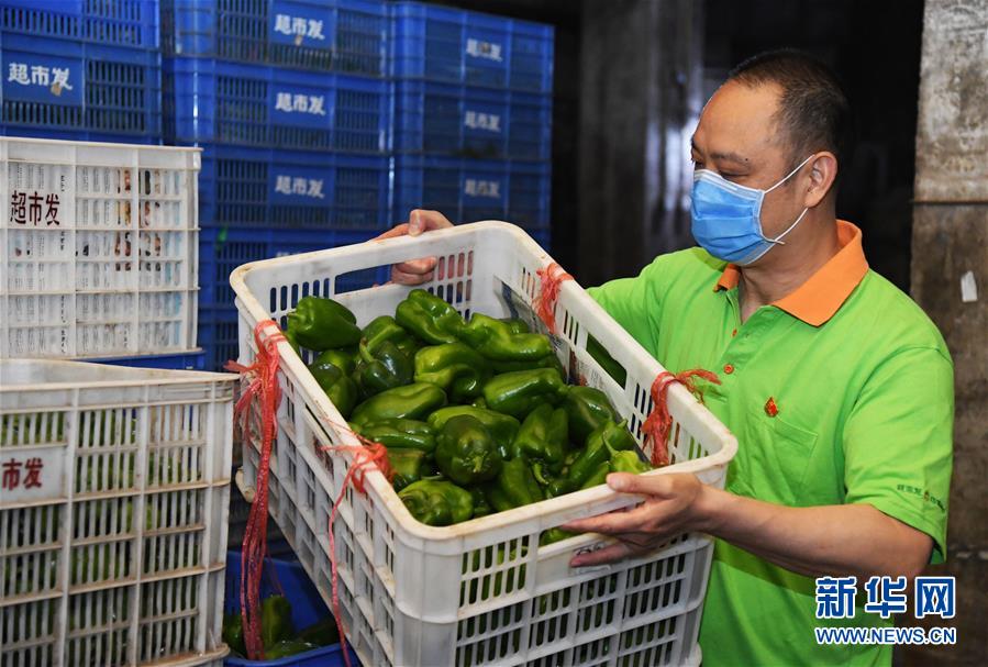 张云春在北京超市发连锁股份有限公司果菜配送中心保鲜库搬运蔬菜(6月28日摄)。50岁的张云春党龄25年,是北京超市发连锁股份有限公司果菜配送中心经理。北京出现新的本地确诊病例之后,张云春和他的团队迅速行动,积极协调货源,缓解供应压力,同时推出15种民生蔬菜限价措施,保障居民生活物资稳定供应。 新华社记者 任超 摄