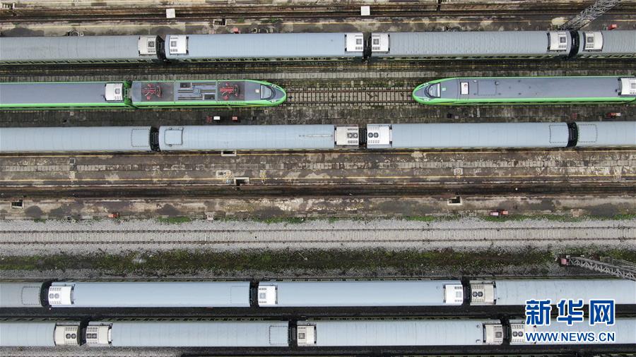 全国铁路暑运启幕前夕,中国铁路成都局集团有限公司重庆车辆段重庆北运用车间组织检修人员,对场站内即将投入暑运的候检列车进行检查、维护,确保暑期旅客运输安全。 新华社记者 黄伟 摄