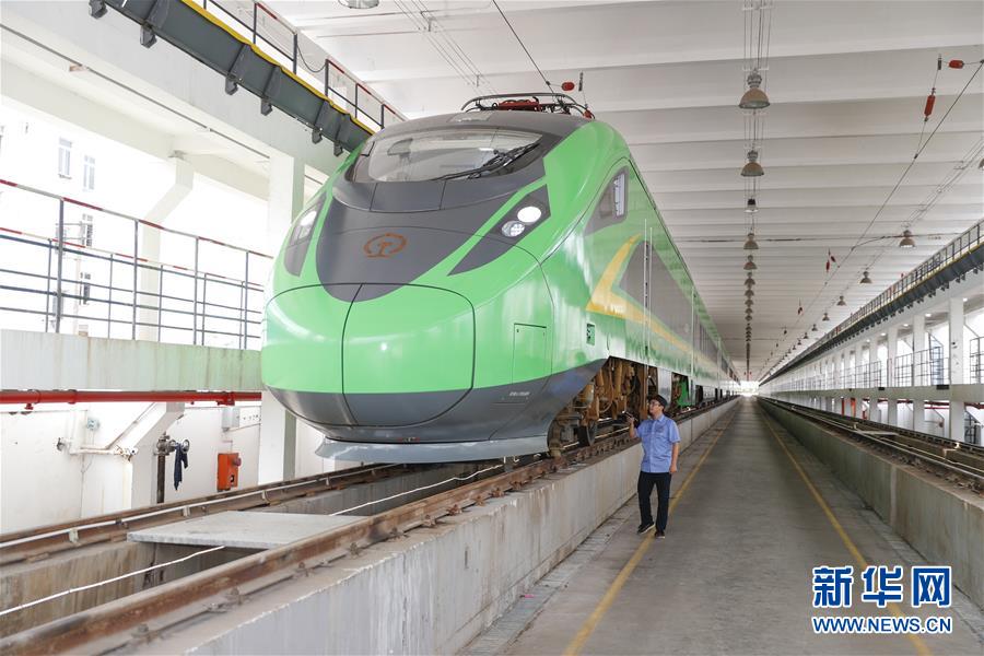 6月30日,重庆北运用车间的检修人员在检查列车的车下走行部。新华社记者 黄伟 摄