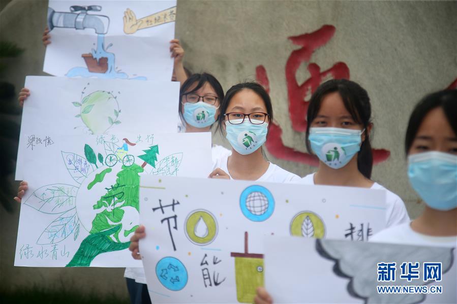 7月2日,江苏南通科技职业学院的学生展示手绘的节能主题宣传画。 当日是第8个全国低碳日,主题是“绿色低碳、全面小康”。各地开展形式多样的主题活动,倡导低碳环保的绿色生活方式。 新华社发(徐培钦摄)