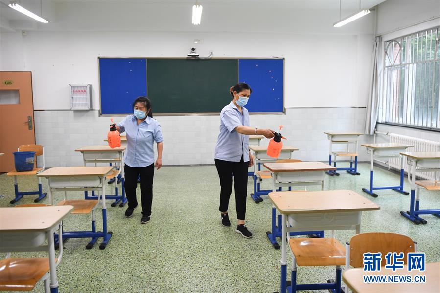 今年该考点将降低考场人员密度,每个考场考生人数从30人减至20人。 2020年全国高考即将拉开帷幕,各地精心做好各项准备工作。 新华社记者 鞠焕宗 摄