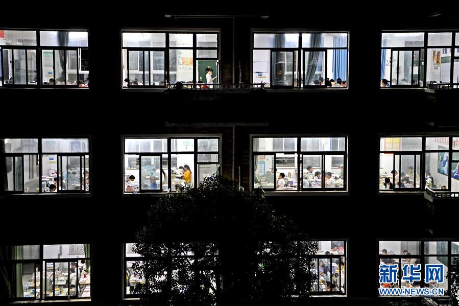 7月3日晚,安徽淮南二中高三学生在教室里完成高中阶段最后一堂晚自习课。 2020年全国高考即将拉开帷幕,同学们从容应对,以良好的状态迎接高考的到来。 新华社发(陈彬 摄)