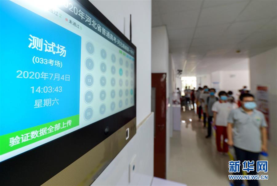 7月4日,在河北省邯郸市峰峰矿区第一中学,考生在演练中排队进入模拟考场。 2020年全国高考即将拉开帷幕,同学们从容应对,以良好的状态迎接高考的到来。 新华社记者 王晓 摄