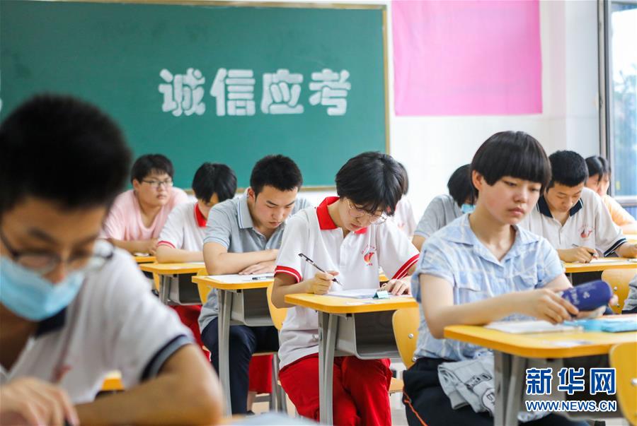7月4日,考生在河北省邯郸市峰峰矿区第一中学模拟考场内考试。 2020年全国高考即将拉开帷幕,同学们从容应对,以良好的状态迎接高考的到来。 新华社记者 王晓 摄