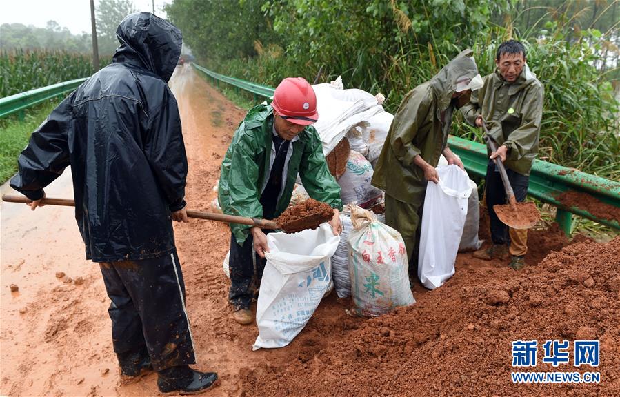 7月10日,在东至县香隅镇丰收圩段,施工人员在抢筑子埂。 安徽省东至县位于长江岸边,拥有85公里长江岸线。近日,长江水位持续上涨,东至县香隅镇丰收圩段出现江水漫溢。为保障群众安全和防汛抢险道路畅通,香隅镇组织对丰收圩段抢筑子埂150米,并安排工作人员开展检查巡护,时刻监测水情。 新华社记者 周牧 摄