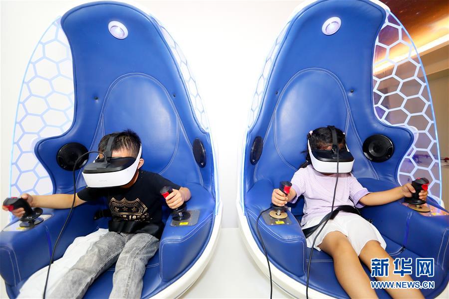 7月12日,小学生在山东省青岛市即墨区环秀街道滨湖社区科普馆进行VR体验活动。新华社发(梁孝鹏 摄)