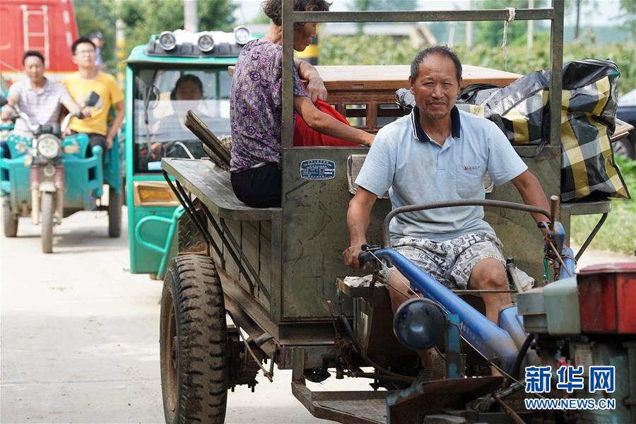 7月23日,盱眙县鲍集镇新迁村村民在转移途中。 当日,受淮河盱眙段水位上涨影响,江苏省淮安市盱眙县启动鲍集圩行洪区万余名群众撤离转移工作,确保安全度汛。 新华社记者 韩瑜庆 摄