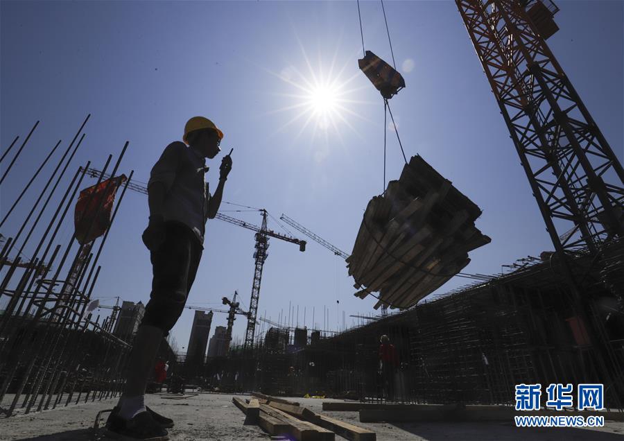 7月24日,工人在河北省遵化市一家棚户区改造建设工地现场施工。 夏日炎炎,劳动者们不畏高温酷暑,坚守岗位,辛勤付出。 新华社发(刘满仓 摄)