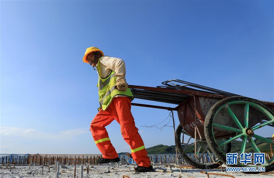 7月23日,在融河高速广西柳州市融安县融江大桥建设工地,一名工人在运送钢筋。 夏日炎炎,劳动者们不畏高温酷暑,坚守岗位,辛勤付出。 新华社发(谭凯兴 摄)