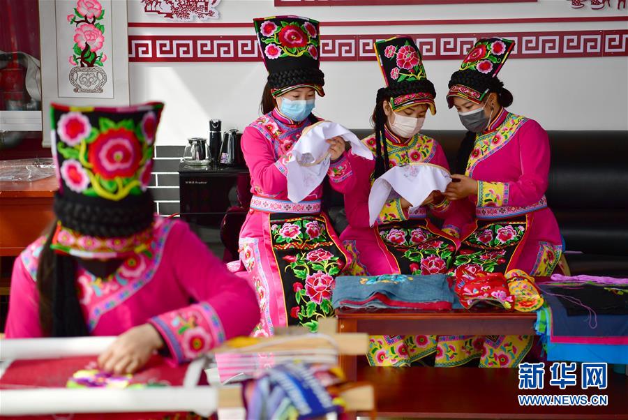 在陕西宁强县大安镇江林安置点一家羌族刺绣文化公司的传习基地内,学员在进行练习(3月13日摄)。 陕南地区地处秦巴山区,是陕西脱贫攻坚的主战场。近年来,陕南各县区因地制宜、精准施策,通过发展社区工厂、特色种植、旅游扶贫、技能培训、电商带货等措施,促进多种产业发展,助力农民增收。 新华社记者 邵瑞 摄