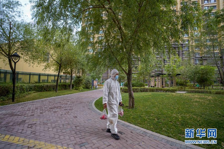 7月30日,在乌鲁木齐经济技术开发区(头屯河区)万达华府小区,志愿者将新鲜羊肉送到住户家里。 新华社记者 赵戈 摄