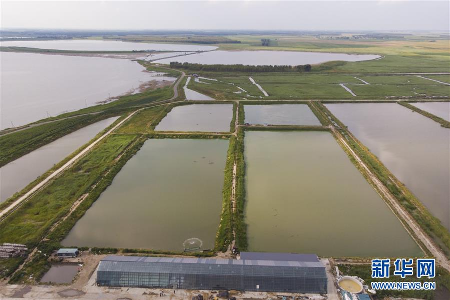 这是7月30日拍摄的黑龙江省大庆市连环湖渔业有限公司名特优苗种繁育基地(无人机照片)。新华社发(张涛 摄)