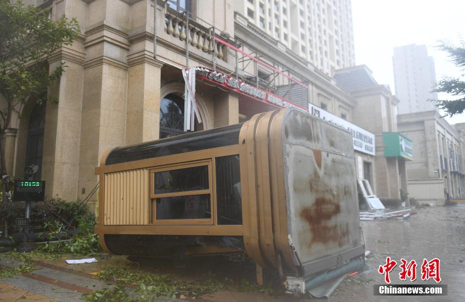 8月4日,一座保安厅被大风掀倒在地。当日,今年第4号台风“黑格比”在浙江乐清登陆,疾风骤雨之下,乐清众多城市设施严重损毁。中新社记者 王刚 摄