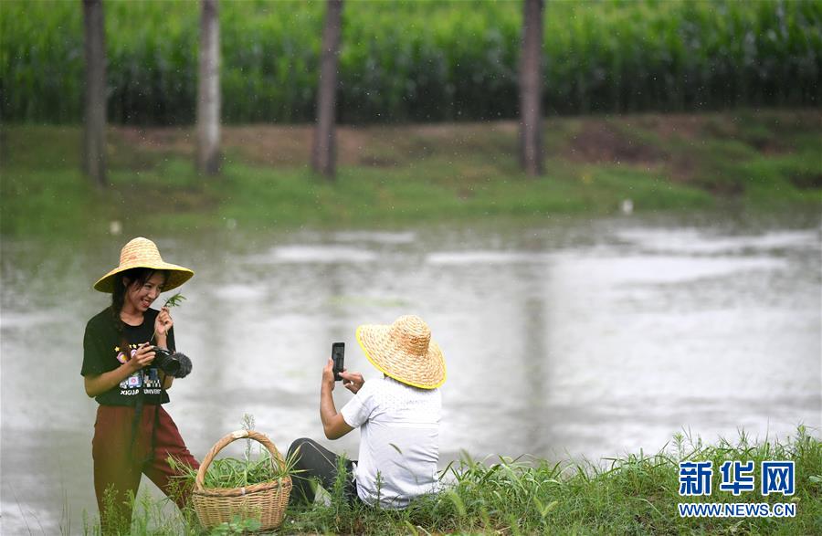 8月5日,王晓楠(左)与父亲在河边拍摄短视频。