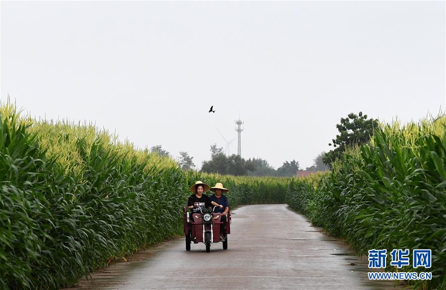 8月5日,王晓楠(左)驾驶三轮车载着父亲回家。新华社记者 郝源 摄