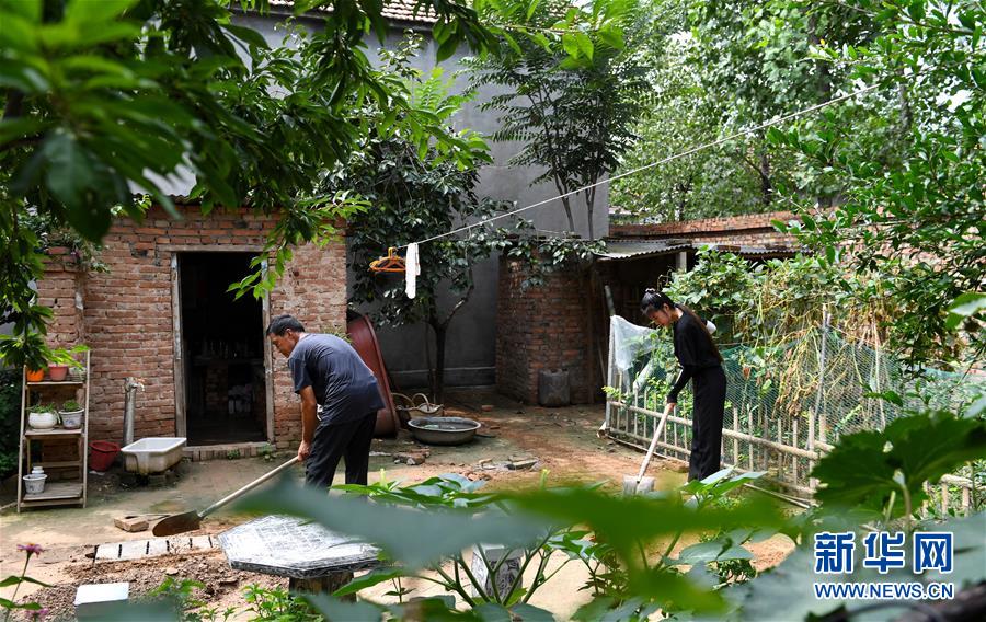 8月4日,王晓楠(右)与父亲在修理下水道。新华社记者 郝源 摄