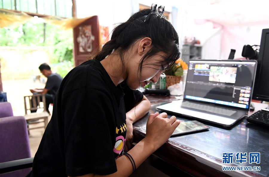 8月4日,王晓楠在剪辑视频。新华社记者 郝源 摄