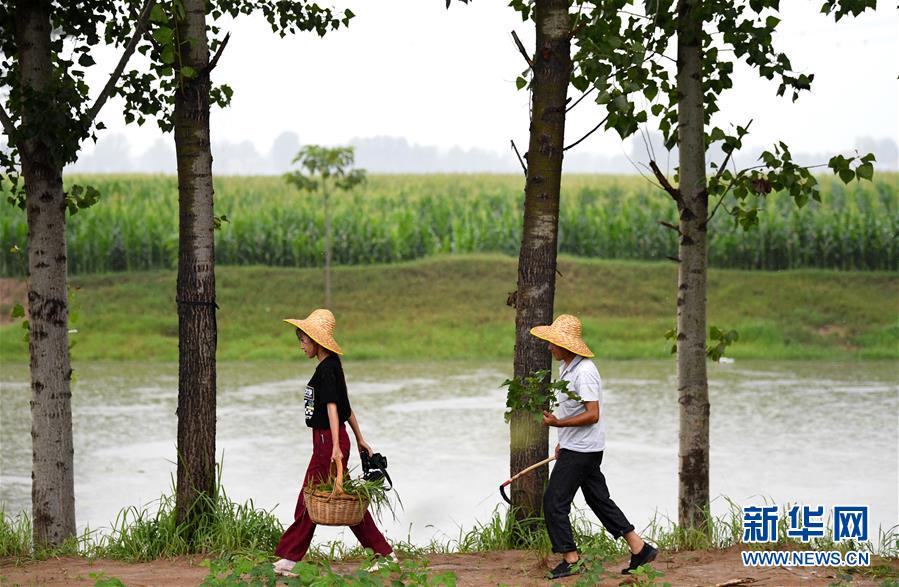 8月5日,王晓楠(左)与父亲在河边拍摄后准备回家。新华社记者 郝源 摄