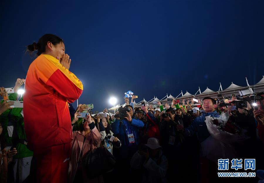 2019年10月26日,第七届世界军人运动会现代五项混合接力赛颁奖仪式结束后上演浪漫一幕,中国代表队吴赫鹏在赛场向当天获得混合接力铜牌的队友王炜求婚。吴赫鹏介绍,他和王炜已登记结婚,由于忙于军运会备战集训,一直欠王炜一个正式的求婚仪式。所以他决定在颁奖仪式结束后,在现场观众、队友和各国运动员的见证下向王炜求婚,给妻子一个惊喜。收到求婚后的王炜激动落泪,将获得的奖牌挂在了吴赫鹏脖子上。她说:“作为军人,只要国家有需要,我们随时等待召唤……先有国家,才有小家。” 新华社记者 李尕 摄